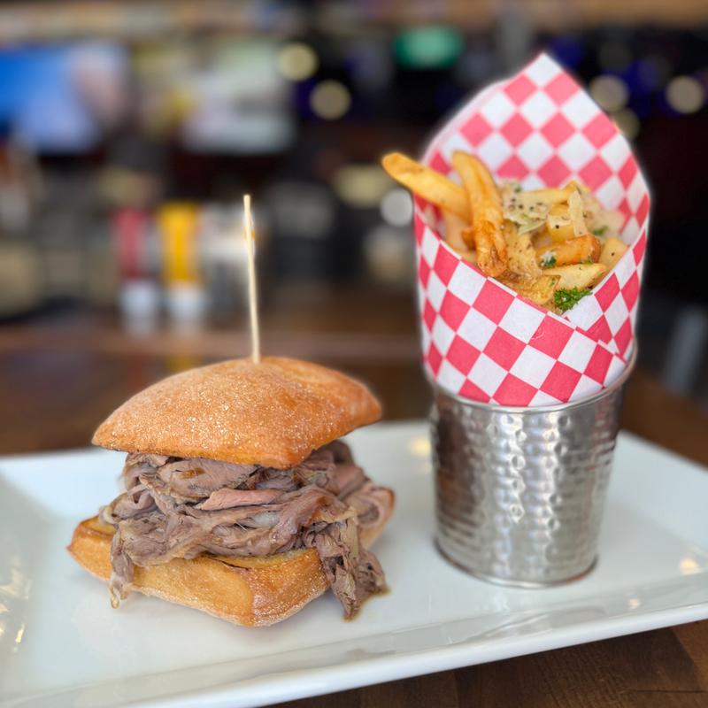 Saturday & Sundays 12-3pm House roasted sliced beef or porchetta on a fresh ciabatta roll served with truffle parm fries. Sides of au jus & horseradish sauce